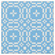 A chic fabric with a four-way pattern of traditional Welsh Tapestry motifs in White on a Sky Blue background.