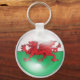 A Key ring design of the Welsh Flag in a Surreal shiny Glass Bubble in a Silver frame ..