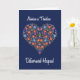 A Grandparents Day Card with 'Happy Grandparents Day' in Welsh and a Heart-shaped Floral Pattern on a Deep Blue background, inspired by Eastern European Folk Art. From a hand-painted paper collage by Judy Adamson, part of the Posh & Painterly 'Folk Heart' collection.