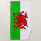 Beach towel with the flag of Wales with a red dragon on a green and white background. The flag of Wales is also know as Baner Cymru or Y Ddraig Goch. Customizable.