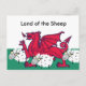 The Welsh red dragon is joined by three cartoon sheep with the words "Land of the Sheep"