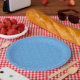 A chic Paper Plate, with a traditional Welsh Tapestry pattern in Sky Blue on a Lighter Blue background. This pattern can be adjusted to fit any Paper Plate.