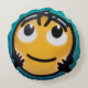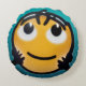 Bleu et noir, rond. Se glisse dernière le dos pour le soutenir. La qualité d'impression est excellente.