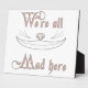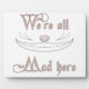 A cheshire grin and wild eyes from the famed cat of Lewis Carol's novel Alice in Wonderland, along with one of the best known quotes from the mischievous feline.