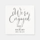 This elegant black and white script engagement party napkin can be personalized with all your names and special date. Designed by Thisisnotme©