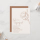 A modern minimal boho engagement party invitation, featuring boho botanical flower and neutral terracotta and beige colours.