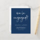 We're Engaged Hand Lettering Navy Blue Engagement Announcement Postcard