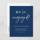 We are engaged! Announce your engagement to family and friends with this customizable photo engagement announcement postcard. It features modern calligraphy and simple typography. This navy blue engagement postcard is available in other colours. Personalize by adding your photos, names and other details.