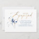 A beautiful and elegant engagement party invitation "We're Engaged" with navy blue bow and flowing handwritten gold script. The clean white background keeps the design light and refined, while the delicate details add a romantic touch. Perfect for couples who want a timeless, modern look to announce their engagement and invite loved ones to celebrate this special moment.
