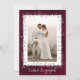 This modern and unique photo engagement party invitation card is perfect to let family and friends know you are engaged and invite them to the party. Send these to your guests with white calligraphy script 'We're Engaged', your photo surrounded by silver glitter hearts on a burgundy background. On the reverse is all your party information. Easy DIY (Do It Yourself) by editing the text in the text boxes on the right side of the screen. Also available in postcard format.