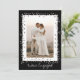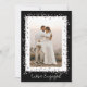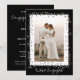 This modern and unique photo engagement party invitation card is perfect to let family and friends know you are engaged and invite them to the party. Send these to your guests with white calligraphy script 'We're Engaged', your photo surrounded by silver glitter hearts on a black background. On the reverse is all your party information. Easy DIY (Do It Yourself) by editing the text in the text boxes on the right side of the screen. Also available in postcard format.