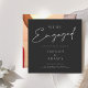We're Engaged Simple Photo Black and White Engagement Invitation. Stylishly announce your engagement to your friends and family with this simple yet elegant, 'We're engaged' engagement party invitation, with a minimalist white script design on a plain dark aesthetic background, with a personalized photo of you both on the back. This engagement invitation gives a modern, minimalist feel, perfect for any simple, elegant wedding.