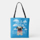 We're Going Places Travel Pug All Over Print Tote with clouds, plane. The perfect tote to take when you are out and about locally or on a trip!