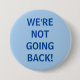 Button pin reads, "WE'RE NOT GOING BACK" Shows here in dark blue letters with a light blue background. Great for Democrats, liberals, and progressives. Wonderful political statement to support Kamala Harris for president.