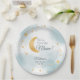 These "We're Over the Moon" baby shower theme party paper plates have a gold crescent moon with star accents against a dreamy watercolor blue and white background. Personalize with name and shower date. For matching "Over the Moon" baby shower invitations, party supplies, games, and more, please view the collection on this page.