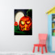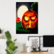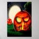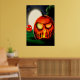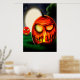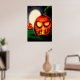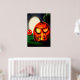Two scary looking orange pumpkin in the forest with one in the front and another in the back, with a large moon in the background. This is a AI generated Halloween art.