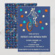 Celebrate BMX fans with these invitations. They feature my hand-drawn comic book style illustration of a werewolf skeleton riding a BMX bike surrounded by stars. The ivory, aqua blue and orange graphics are set against a blue background. Below all of your party details are in a coordinating ivory colored lettering.