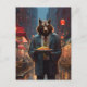werewolf with a big dish of beef chow mein postcard