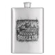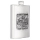 The product is a good size and came exactly as it was pictured. The lid is not attached to the flask, which could be dangerous on drunken nights... The print came out surprisingly well and looks very sharp. Would definitely recommend.