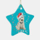 An adorable West Highland White Terrier sits among a swirl of silver stars on the front of this Holiday ornament. The image is placed on a bright teal background. The back of the ornament has the same silver star and teal background, with two custom text fields in darker teal gray. Perfect for anyone who has lost their heart to a Westie!