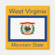 An authentic premium quality image of the flag of West Virginia set between the state name and nickname over a flag-colour background.