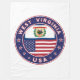Badge of West Virginia with flag of West Virginia and flag of USA colours, rounded shape.