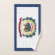 It was advertised as NAVY blue and the color sent was greenish blue. I am disappointed in this product. Quality and printing are great as are all my other orders. As you can see in picture the tea towel on right is perfect, hand towel not so much! Print was awesome and just as ordered
