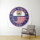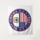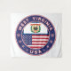 Badge of West Virginia with flag of West Virginia and flag of USA colours, rounded shape.