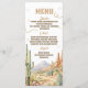 A western-themed baby shower menu card featuring a desert landscape, cacti, rope accents, and rustic typography. Designed to present entrée, main, and dessert selections in an elegant format. Perfect for cowboy, wild west, or country-inspired baby shower themes and coordinated event stationery.