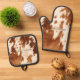 Western Brown Cream Cowhide Oven Mitt & Pot Holder Set