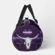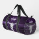 This western duffle bag features a cool bull cow skull that is purple white with a country cowgirl old rustic monogram design. Old wild west style antique vintage farmhouse inspired, trendy, modern farm animal. Image copyright Marg Seregelyi Photography.