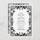 A modern Western cowboy cowgirl style design with hand drawn elements of a cow skull, horseshoes, floral and cactus ornaments. Black and white floral border wedding design featuring hand drawn floral, cactus, cow skull and horseshoes. This contemporary modern Western country wedding design is ideal for all seasons. An elegant black and white ranch, farm or barn style design featuring hand drawn illustrations. A Western Country cowboy themed wedding invitation design with modern elegant elements. Matching wedding stationery items and other wedding invite formats are also available.