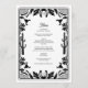 A modern Western cowboy cowgirl style design with hand drawn elements of a cow skull, horseshoes, floral and cactus ornaments. Black and white floral border wedding design featuring hand drawn floral, cactus, cow skull and horseshoes. This contemporary modern Western country wedding design is ideal for all seasons. An elegant black and white ranch, farm or barn style design featuring hand drawn illustrations. A Western Country cowboy themed wedding menu card design with modern elegant elements. Matching wedding invitations and other stationery items are also available.