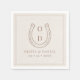 Bring rustic charm to your wedding table with these elegant western-style napkins featuring a classic horseshoe and personalized monogram. The warm brown tones and minimalist typography create a timeless country look perfect for barn receptions, outdoor weddings, or western-themed celebrations. A stylish detail that adds warmth and personality to your event décor.
