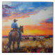 Western Cowboy and Herd Tile Trivet