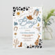 Saddle up for a memorable celebration with this western cowboy baby shower invitation! Featuring playful cowboy hats, boots, cacti, and cow print accents, this rustic design is perfect for honoring a little boy on the way. The bold fonts and charming western illustrations create a fun, festive atmosphere that sets the tone for your event. Ideal for country-themed showers, this invitation blends rustic charm with modern style to delight guests and make your party unforgettable.