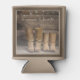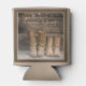 This fun, rustic can cooler makes a perfect casual wedding favour for guests. It features two pair of cowboy boots and a log cabin wall with string lights. For the western or horse lover. Personalize it with a single name, or add a couple's names. Delete the wedding date if not needed. Created by Simply Farmhouse Press; photo by Melanie Mauer on Unsplash.