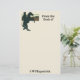 Adapted from a vintage book cover this is a cool western theme design that features a bucking bronco cowboy silhouette. The rider on the horse sits in front of a panel that shows cows on the range that to suggest that he is on a cattle drive trail. The text is in an old west style font and says: from the desk of. There is a sample name template at the bottom that you change to your own name. The paper colour front and back is a creamy aged parchment tan. This is perfect stationery or letter head for a guy who loves horses or a gal who loves cowboys.