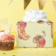 Western-themed patterned wrapping paper features a pair of cowboy boots with revolver and red bandana on light background