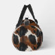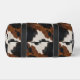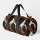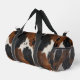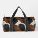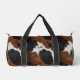 For cowboys, cowgirls, cattle hands, ranchers and lovers of all things western, this unique duffel bag has a brown black and white tri-colour cowhide pattern with a furry look. A text template is included to personalize with your monogram initials. Take it to the gym, school, the office, and getaways. It has the perfect casual appeal to go with blue jeans, cowboy boots and a ten cowboy hat. Note: This item uses a faux cowhide digital print to cover the surface of the duffel bag. There is no actual fur on the product.