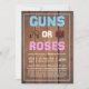Unveil your little one’s gender with a twist of western charm! Our "Guns or Roses Gender Reveal Invitation" perfectly captures the excitement of a cowboy or cowgirl reveal. This vibrant design is ideal for your Country Gender Reveal Party, complete with cowriders and girls' hairbows. Whether you’re team blue or team pink, our invitations set the stage for a memorable celebration. Perfect for vaqueros and vaqueras, our Guns or Glitter Gender Reveal theme adds sparkle and fun. Order now and make your event unforgettable!