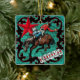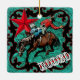 Rodeo Cowboy bronc riding ornament with faux leather background Ceramic Ornament