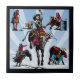 5 different rodeo events with blue starburst background printed on ceramic tile