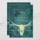 Western Rustic Dark Teal Sunflowers Bull Skull Invitation