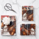 Vintage styling, a feeling of an old-fashioned country Christmas, these gift wrapping sheets are sure to stand out under the tree, featuring Santa on horseback looking like a Holiday cowboy, riding through the snow with a beautiful ranch style red barn in the background.