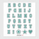 Western type modern teal bandana paisley font typography monogram letters alphabet sticker pack for cowboys, cowgirls, western theme party monogramming, personalizing, customizing, note writing, journals, notebooks, and more. This set also includes an exclamation point, heart, flower, and star.