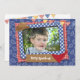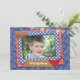 A scrapbook style, western themed photo invitation with red bandana, and cowboy hat with coordinating paisley and chequered plaid patterns in red and blue. Coordinating bunting flags make for a festive party invitation. Easy to personalize with your party details and favourite photo.