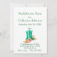 This is a 2 sided invitation with cowboy boots with flowers on a plain white background. The background colour can be changed. . The front side has a text field that has BACHELORETTE PARTY that can be changed to represent any other party theme. The text can be deleted from the front if you don't want it at all.