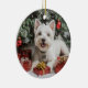This adorable Christmas ornament, featuring a West Highland White Terrier lying under a Christmas tree, is a wonderful gift for any Westie lover.
