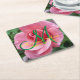 Wet Pink Rose Monogram Square Paper Coaster